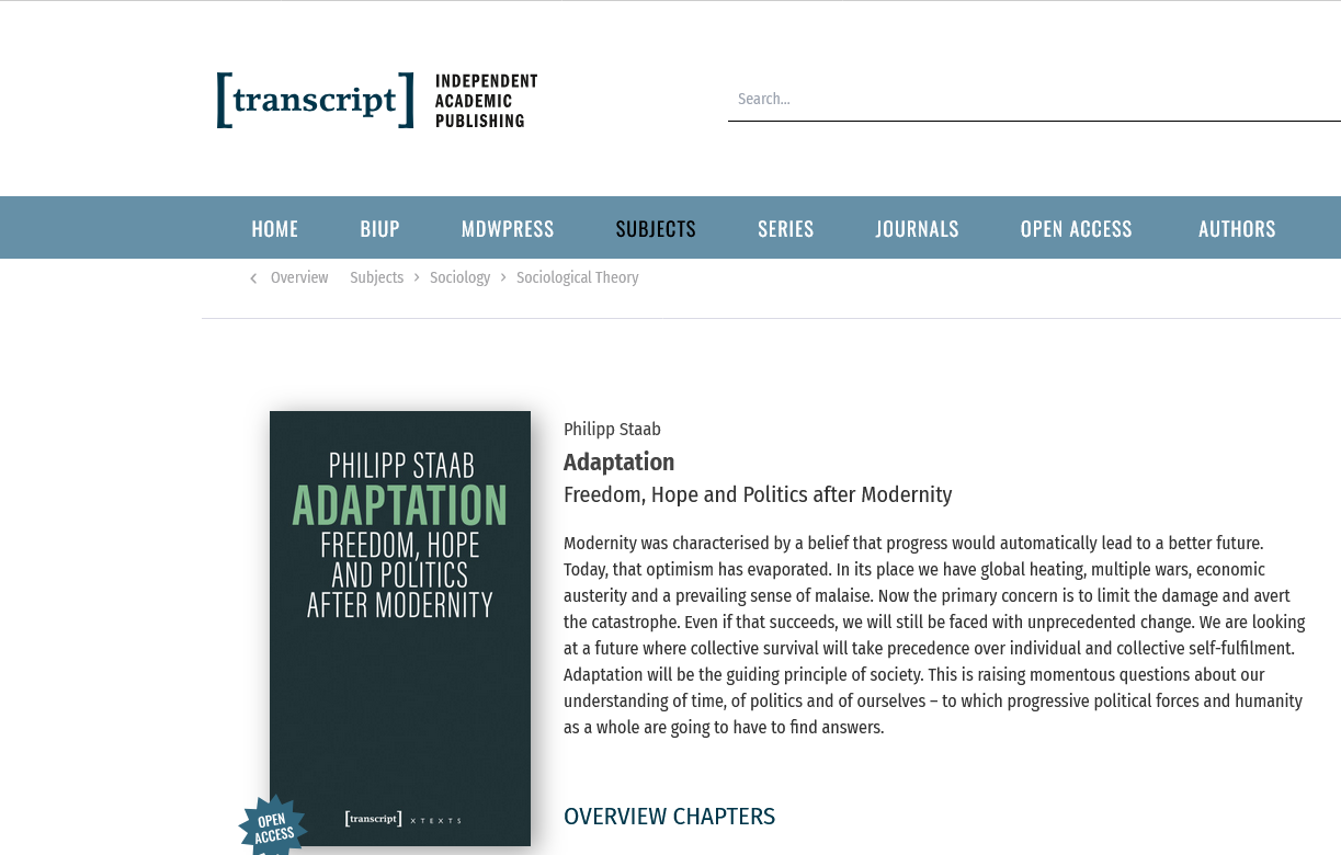 Philipp Staab is Professor of Sociology of Work, Political Economy and Technological Change at Humboldt-Universität zu Berlin and Co-Director of the Einstein Center Digital Future. In his research, he combines topics of work, social structure analysis, sociology of technology and political economy. He is currently working on the transformations of digital capitalism, on ecological conflicts in late-modern societies, their changes in the context of war and the political crises that arise from all these contexts. His most recent book translated in English is Adaptation. Freedom, Hope and Politics after Modernity (2026). In fall 2025, Suhrkamp has published Systemkrise. Legitimationsprobleme im grünen Kapitalismus in German.