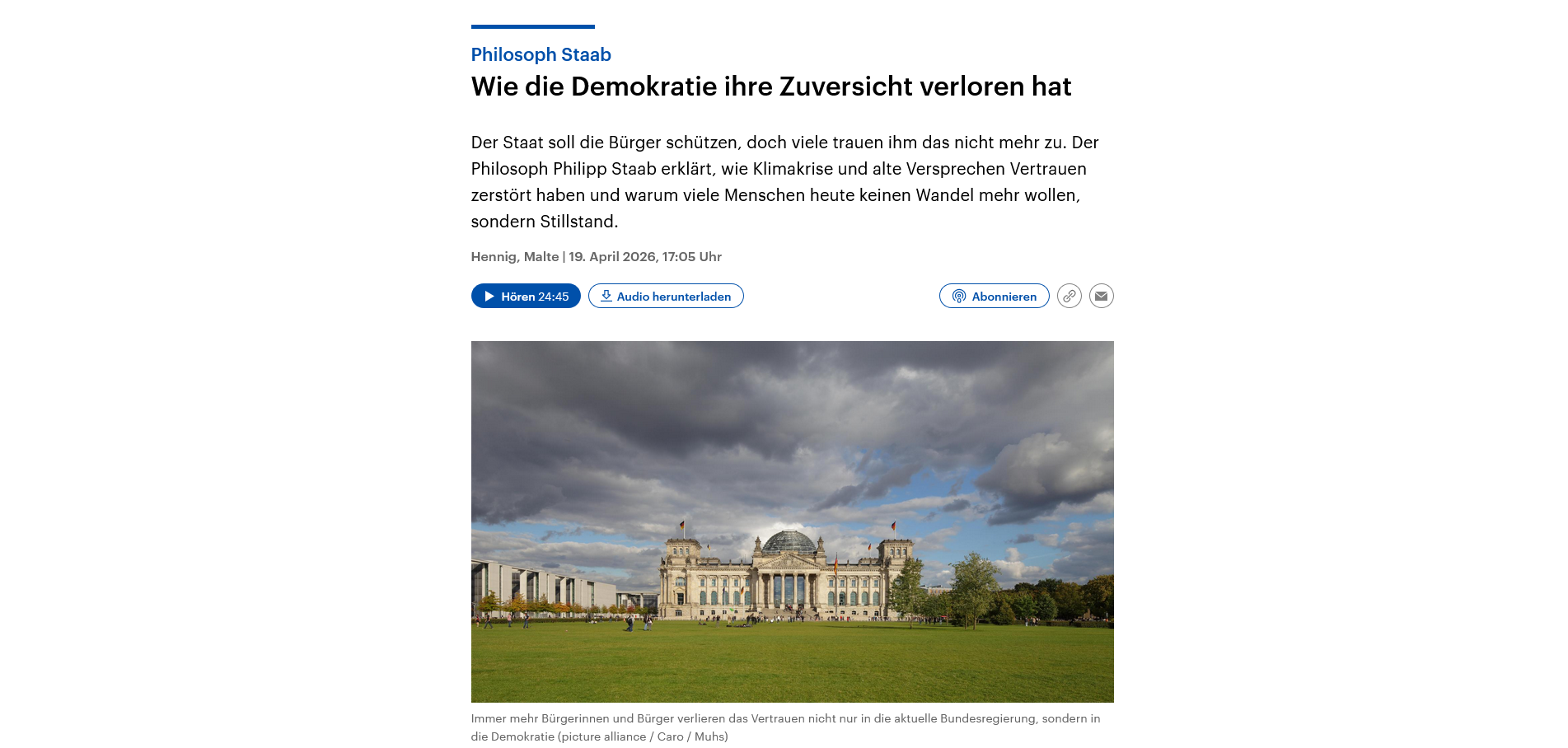 Philipp Staab ist Professor für Soziologie von Arbeit, Wirtschaft und technologischem Wandel an der Humboldt-Universität zu Berlin und Co-Direktor am Einstein Center Digital Future. In seiner Forschung verbindet er Themen der Arbeit, Sozialstrukturanalyse, Techniksoziologie und politischen Ökonomie in gegenwartsanalytischer Absicht. Aktuell befasst er sich mit der Entwicklung des digitalen Kapitalismus, der Entfaltung des ökologischen Gesellschaftskonflikts, den Veränderungen spätmoderner Gesellschaften im Kontext von Krieg und den politischen Krisen, die sich aus diesen Zusammenhängen ergeben. Zuletzt erschienen seine Bücher Digitaler Kapitalismus. Markt und Herrschaft in der Ökonomie der Unknappheit (2019), Anpassung. Leitmotiv der nächsten Gesellschaft (2022) sowie im Herbst letzten Jahres: Systemkrise. Legitimationsprobleme im grünen Kapitalismus (2025).